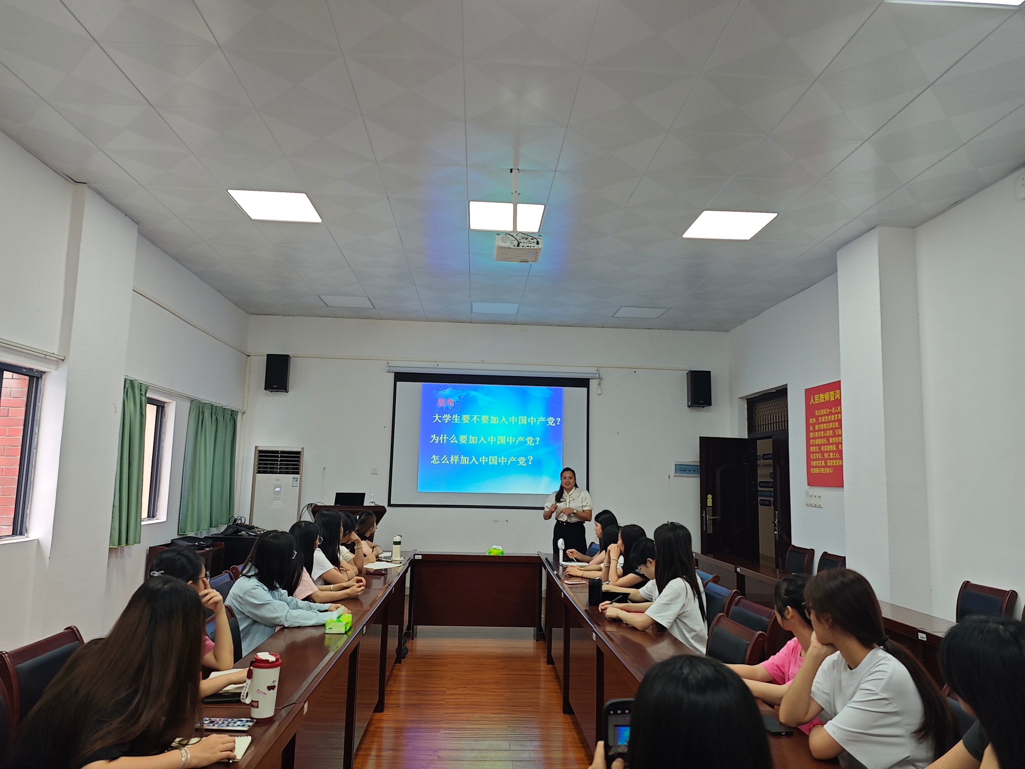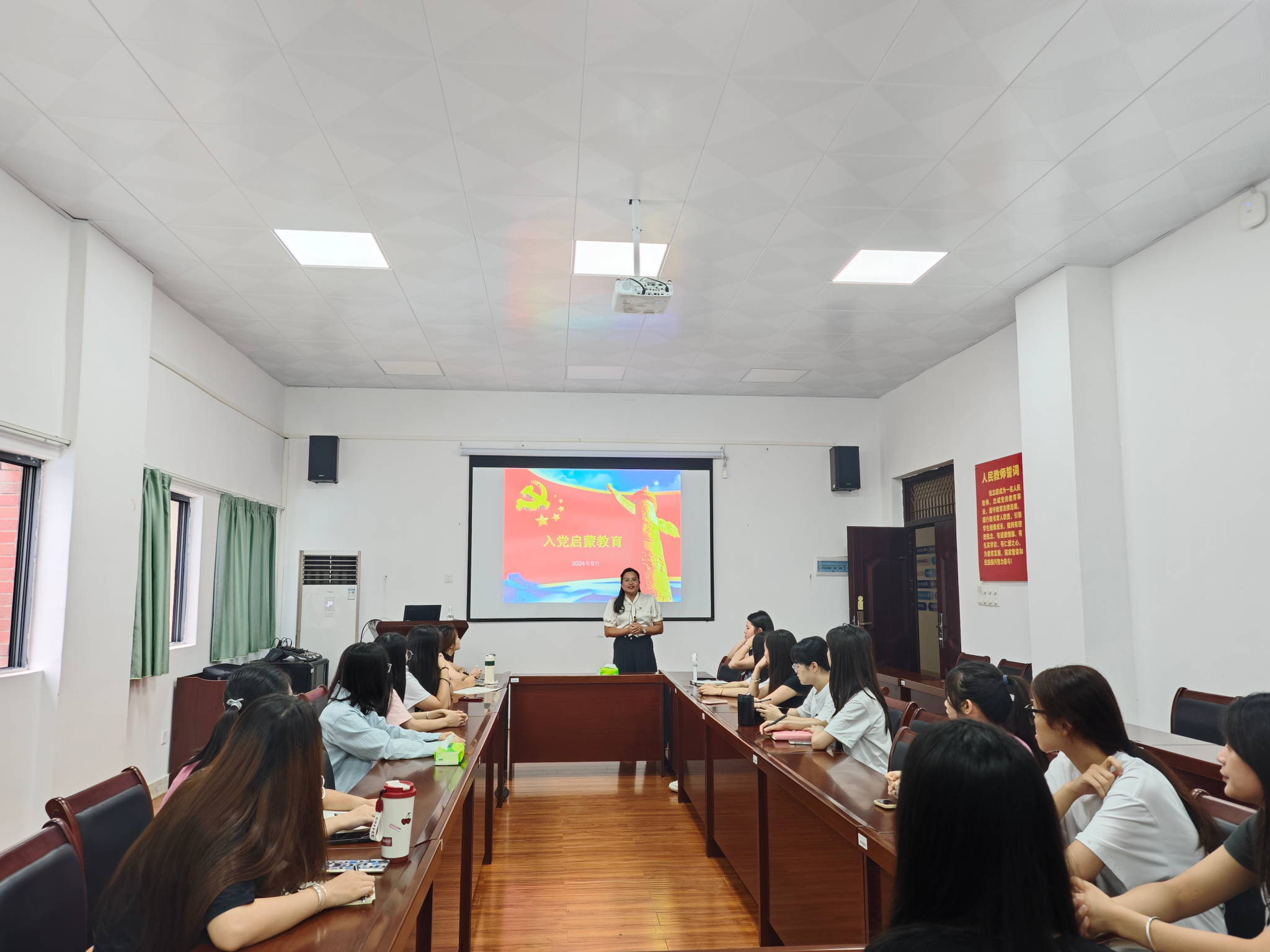 9月26日下午,beats365员工第四支部在武鸣校区地化楼C414开展入党启蒙教育,22物流专升本一班、22物流专升本二班未申请入党的同学参加了会议。入党启蒙由员工第四党支部书记黄海嫚老师主讲。