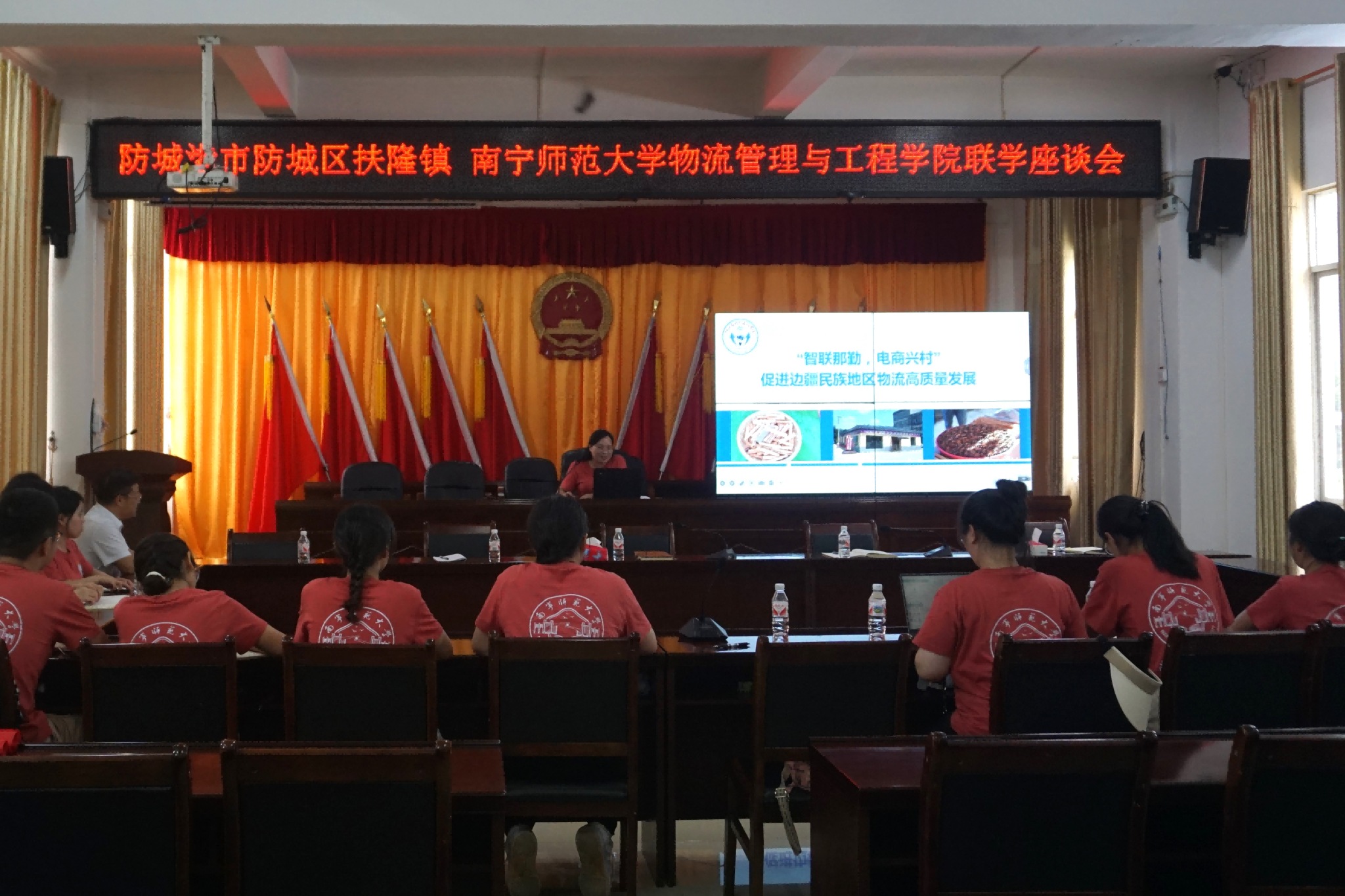 7月12日,beats365暑期“三下乡”社会实践团成员与中共防城区扶隆镇委员会开展“智慧物流助力产业发展,共绘乡村振兴美好蓝图”联学座谈会。扶隆镇党委书记陈设、镇党委委员、组织委员覃晓、镇团委负责人陈晓雯、镇党政办副主任曾李瑛和beats365暑期“三下乡”实践团成员参加了本次联学座谈会。