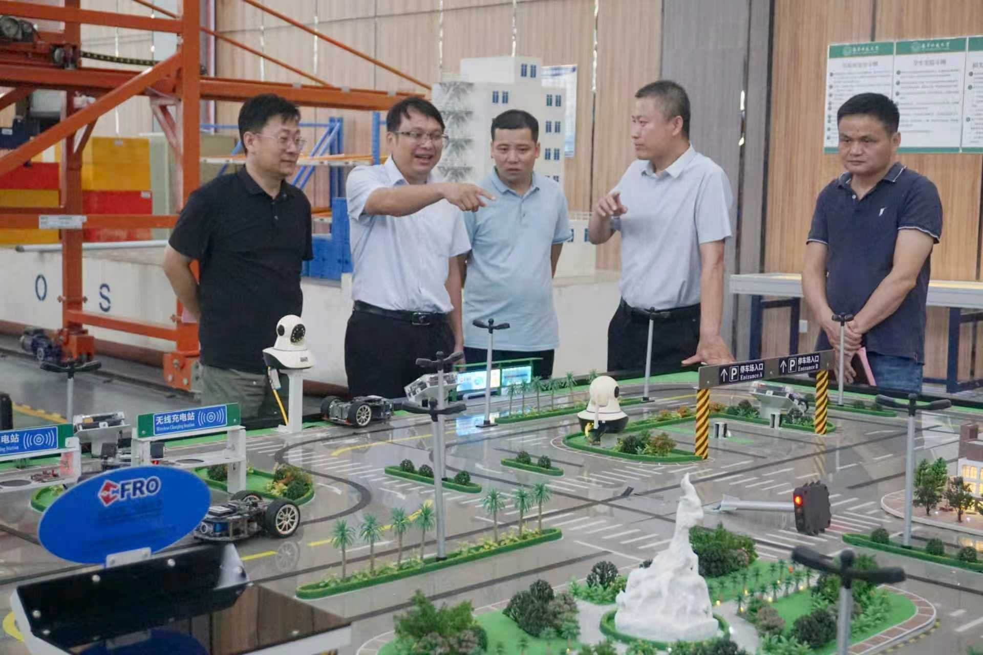 座谈结束后,双方来到实验室A107,参观了公司智慧物流实训中心。张培铭副总经理一行详细了解了各模块功能,重点观看了智能交通沙盘的城市物流配送动态演示,并鼓励中心持续推动产教融合,对接企业需求,为员工提供更贴近实际的实践平台,助力应用型人才培养。