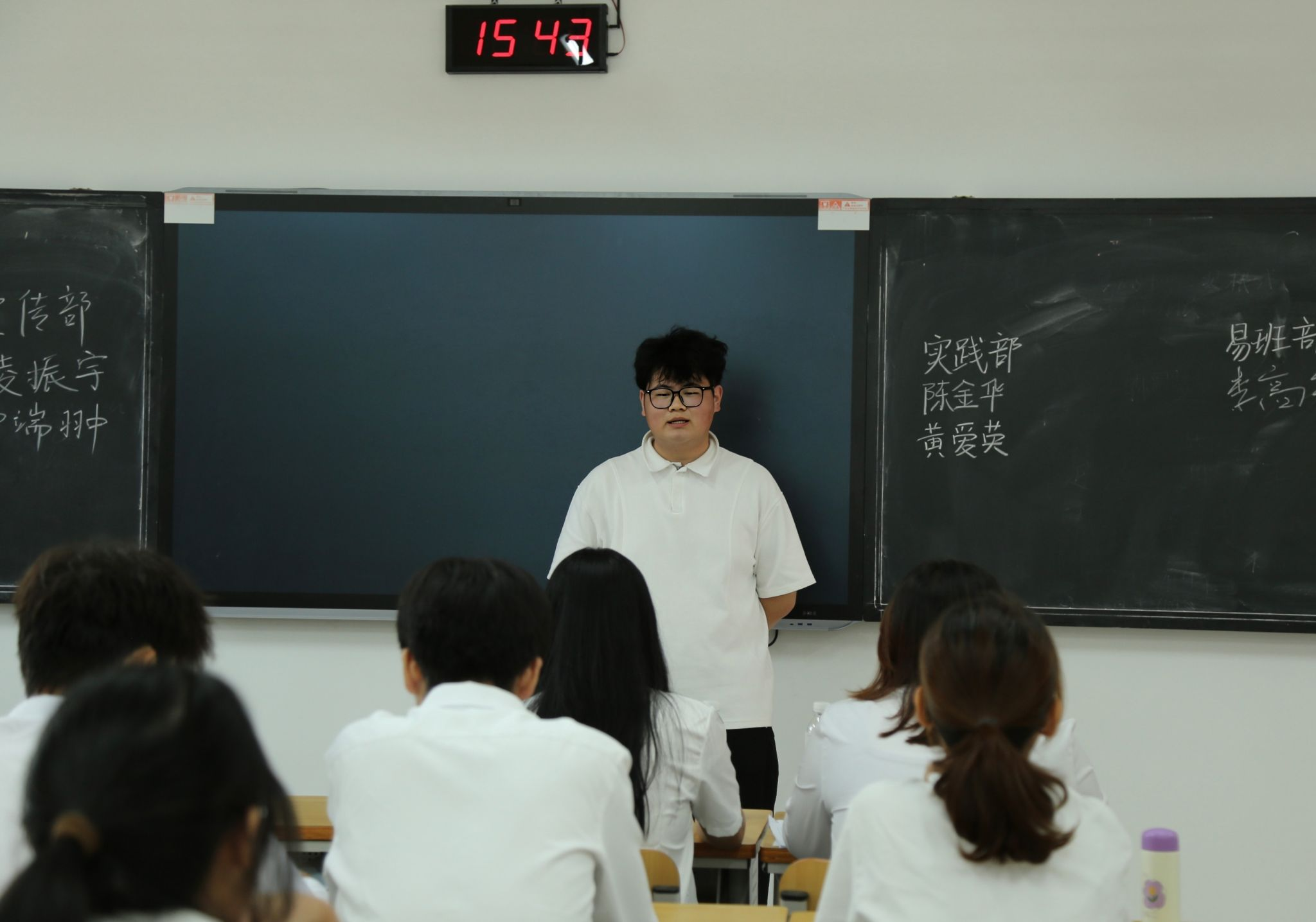 面试环节中,新生们依次上台。他们通过自我介绍,清晰展现个人优势、特长及报名初衷。面试官则结合工作实际展开提问,通过“自我介绍、情景模拟、部门认知问答”三大核心环节,从沟通、应变、团队协作等多个维度,全面考察每位同学的综合素质。